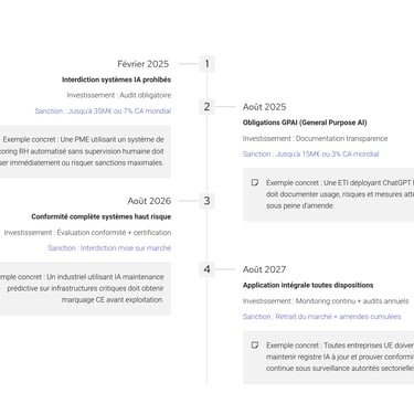 "L'assessment nous a révélé 3 systèmes IA à haut risque non identifiés. Le rapport détaillé avec références réglementaires précises nous a permis de structurer notre plan de mise en conformité et de convaincre le board d'un budget 180k€."