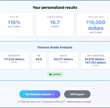 Accurately calculating the ROI of an AI project is no longer a luxury but a strategic necessity. Organizations that structure their approach with rigorous methodologies (Monte Carlo simulation, sector benchmarks, contextual adjustments) reduce their failure rate from 70% to 30%.